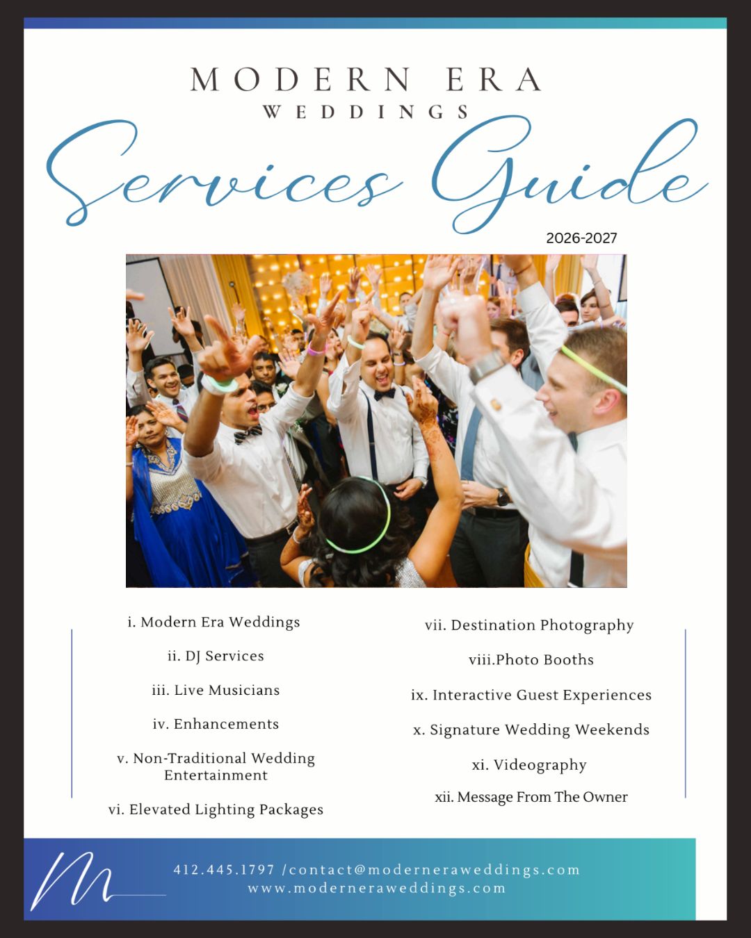 With Modern Era Weddings, every step of your entertainment planning is guided by seasoned pros who’ve curated hundreds of epic celebrations.